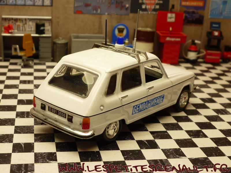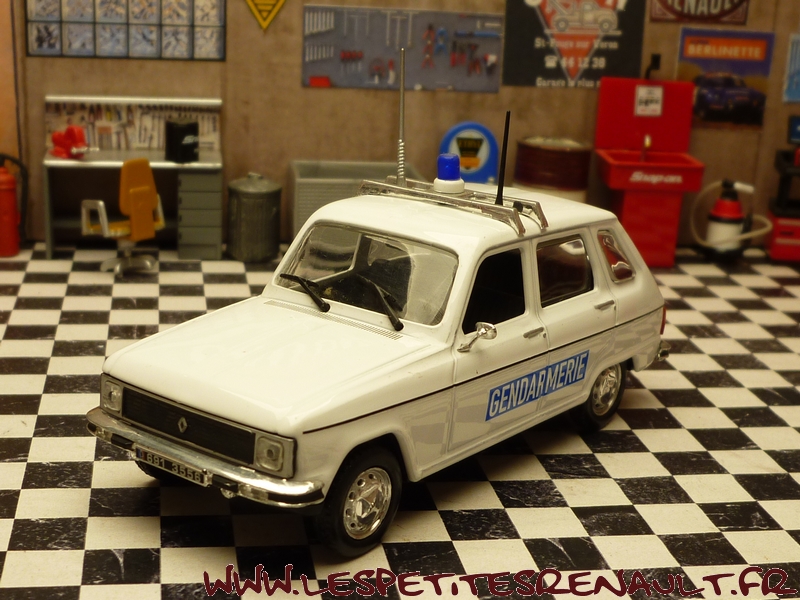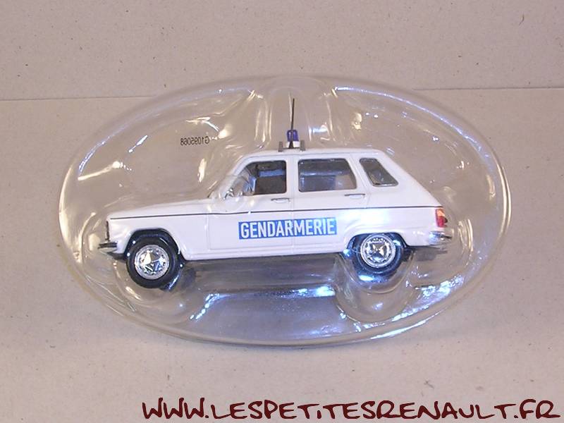 Modèle : Renault 6 L Année : 1974 Couleur : Blanche Echelle : 1/43 Fabricant : Norev Référence : 68 Collection : Police et Gendarmerie (Hachette) Matière : Zamak, châssis plastique Série limitée : Non Boitage : Blister + boite carton pliée Commentaires : Version Gendarmerie Aéroport |