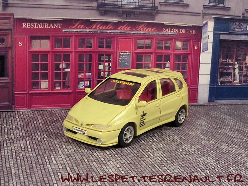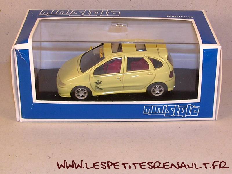 Modèle : Scenic I phase 1 Année : 1998 Couleur : Jaune Echelle : 1/43 Fabricant : Ministyle Référence : 902 Collection : Non Matière : Résine Série limitée : Non Boitage : Boite cristal 6x14, surboite Ministyle Commentaires : Version carrossée par Césam sur plans Sbarro sur base de Scenic I |