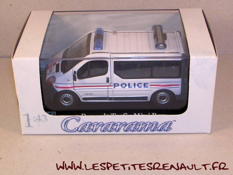 Modèle : Trafic II phase 1 vitré Année : 2003 Couleur : Blanc Echelle : 1/43 Fabricant : Cararama Référence : 61010 Collection : -- Matière : Zamak, châssis plastique Série limité : Non Boitage : Boite cristal 8x14, surboite Cararama Commentaires : Décoration Police Nationale. Version avec portes avant ouvrantes. Commercialisée sour la marque Oliex |
