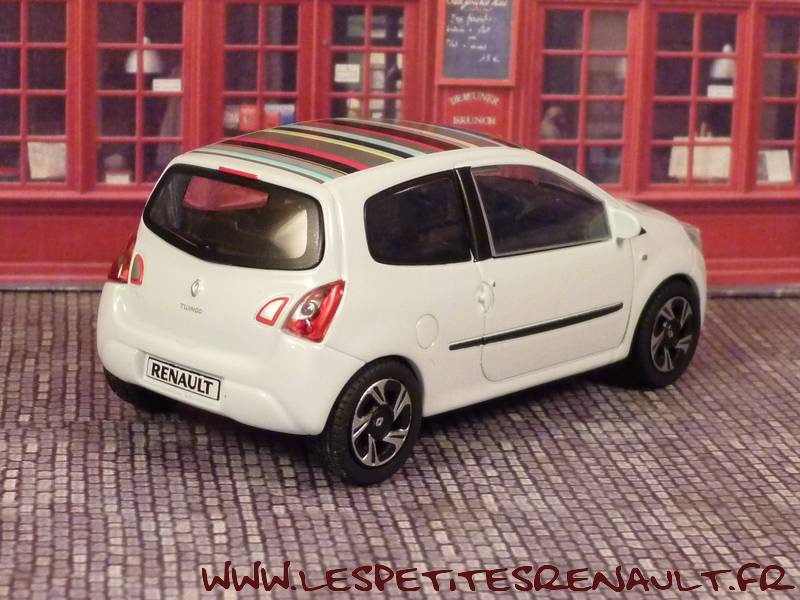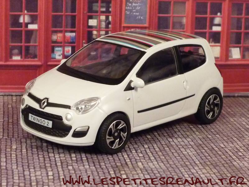 Modèle : Twingo II phase 2 Année : 2012 Couleur : Blanche Echelle : 1/43 Fabricant : Keng Fai Toys Référence : 7711431530 Collection : Non Matière : Zamak, châssis plastique Série limitée : Non Boitage : Boite cristal 11x11 Commentaires : Version phase 2 présentée officiellement le 13 septembre 2011 au Salon de l'automobile de Francfort |